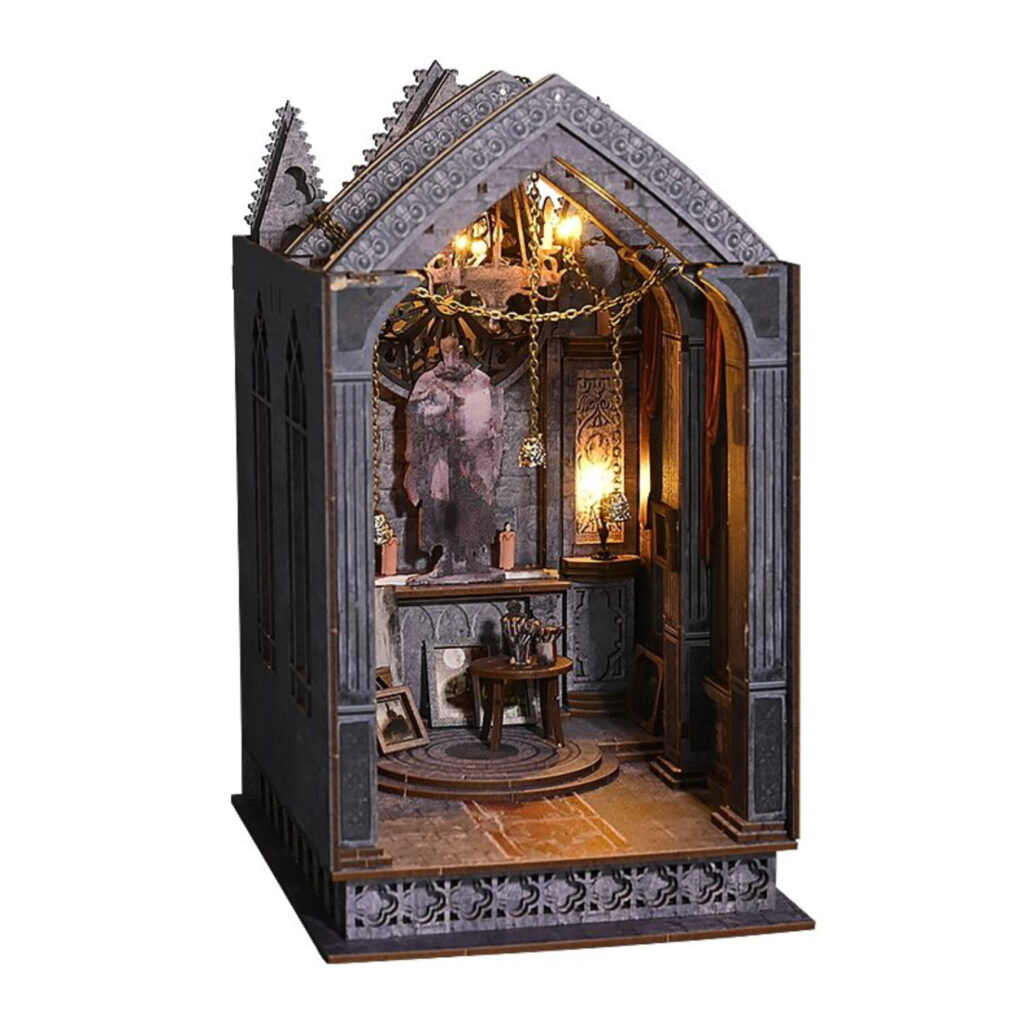 И снова какое-то непонятное иностранное слово, за которым скрывается целый мир. Букнук — это мини-диорама или декоративная вставка в виде книги, которая позволяет заглянуть в сказочный сюжет. Между томами ваших любимых книг вдруг появляется крошечный уголок: сцена из фильма, фрагмент сказочного интерьера или целый фантастический мир из любимого произведения. Косой переулок из Гарри Поттера, терраса кафе с картины Винсента ван Гога или кабинет Шерлока Холмса — все это в мельчайших деталях вы сможете собрать сами! А для большего волшебства конструкция дополняется подсветкой и музыкальным механизмом. Просто чистейшая магия, не иначе!