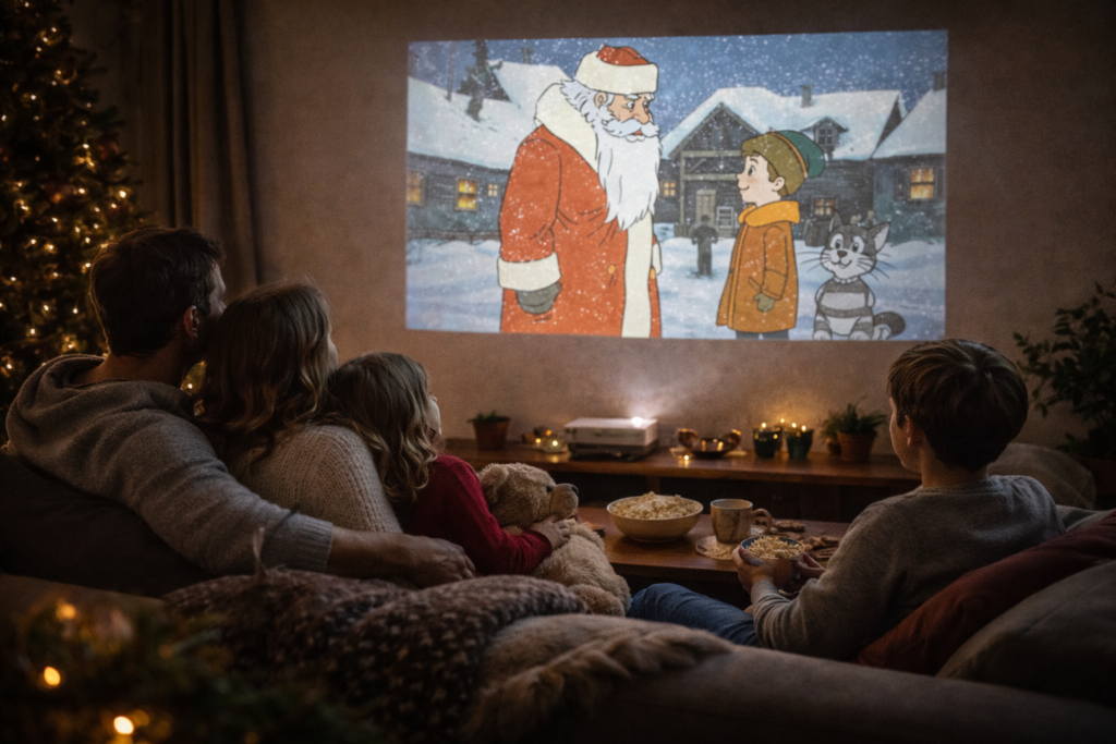 Это еще один простой способ собрать всю семью в одной комнате, и сделать зимний вечер совершенно волшебным. Домашний проектор, который показывает фильмы прямо на стене и моментально превращает гостиную в семейный кинотеатр. Сейчас большой выбор на любой вкус и кошелек, поэтому легко можно найти маленькие и недорогие модели, например, HY300 или FRBBY P20. Фильмы и мультфильмы на стене воспринимаются совсем иначе, создается то самое чувство «как в кино». Проектор быстро превращается в семейную традицию: мультмарафоны в выходные, вечер новогодних фильмов, домашние премьеры с попкорном и пледами, просмотр старых семейных видео и фотографий, которые вдруг начинают восприниматься совсем по-новому на большом экране. Проектор не требует особого повода, он идеален для длинных зимних каникул, когда хочется проводить время вместе, обнимаясь на диване и сопереживая главным героям.